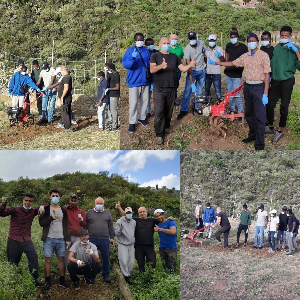 Gracias al convenio de colaboración entre ACIUDESA y Cruz Roja, fue posible impartir formación agraria a 50 inmigrantes de Mali que llegaron en pateras en plena pandemia y permanecieron dos meses alojados en el municipio de Arucas, gracias a Cruz Roja.